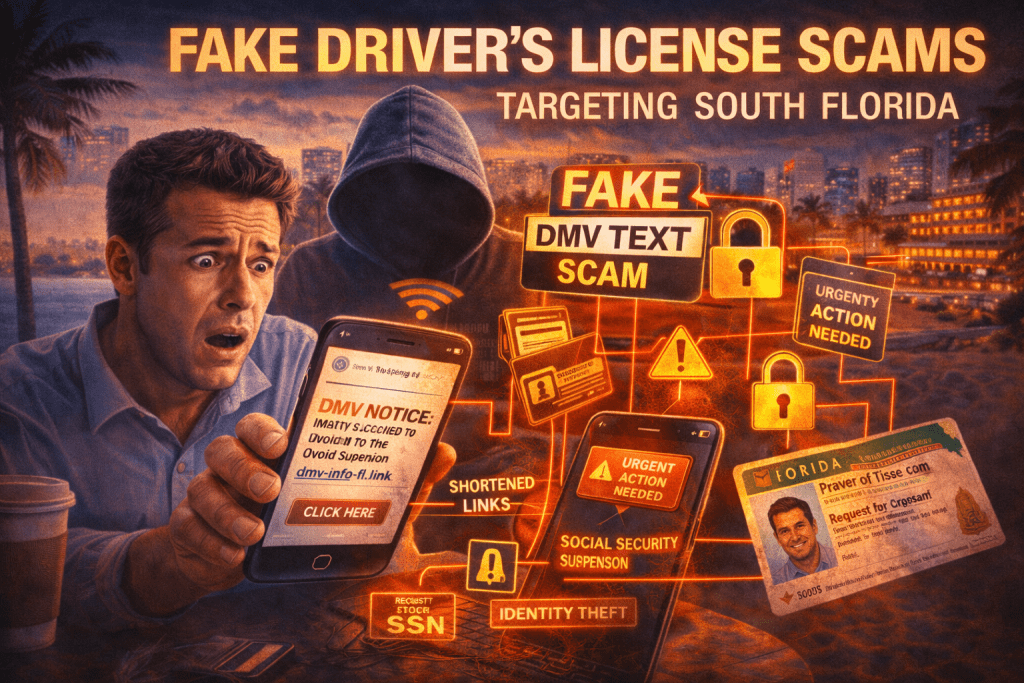 South Florida is a prime target because of high population density, tourism, and constant movement. As a result, scammers rely on fear and urgency. Many people assume a license issue could affect driving, work, or travel, so they react quickly instead of verifying the message.
