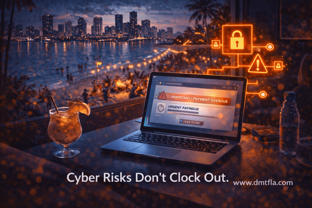 Friday night cyber risks quietly increase across South Florida as businesses wind down, employees log off early, and attention shifts to weekend plans. While offices may feel empty, networks, email accounts, and devices remain fully active.