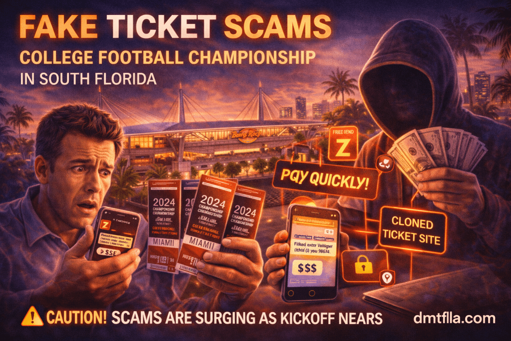 Last-minute ticket scams increase rapidly when major sporting events arrive in South Florida. As kickoff approaches and tickets become harder to find, urgency replaces caution for many buyers in Miami and Fort Lauderdale.